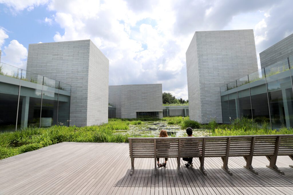 Designed for unhurried exploration, Glenstone invites visitors to wander wooded paths dotted with large-scale outdoor sculptures before heading indoors to the Pavilions, where modern and contemporary works are displayed with intention and space to reflect. The experience feels contemplative and immersive, less like a traditional museum visit and more like a personal journey through art and landscape.