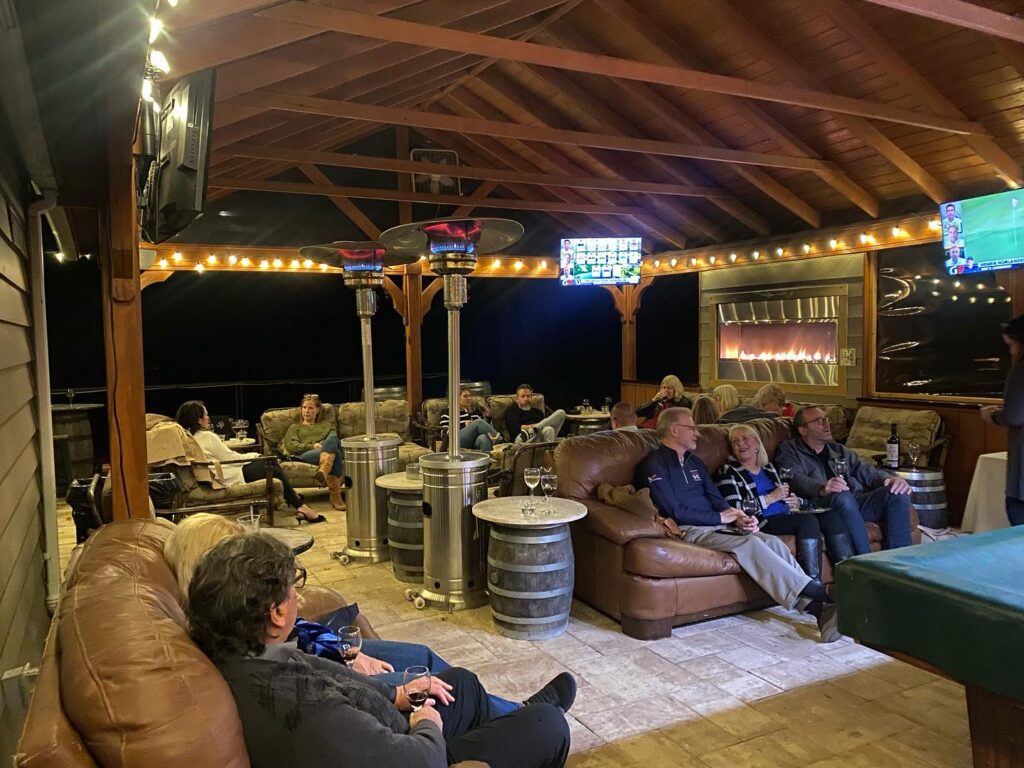 Windridge Vineyards offers a variety of outdoor seating options, from wood and gas-burning fire pit reservations to the enclosed Seneca Pavilion. With scenic views of the surrounding vineyards and a full-service wine bar, it’s the perfect winter escape.