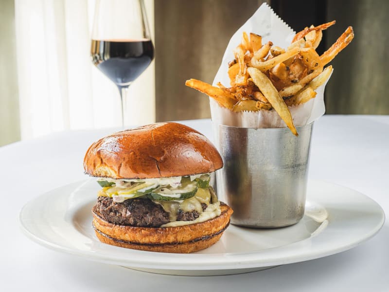 Located in the Agricultural Reserve, The Comus Inn gives guests a chance to view the rolling hills of Montgomery County’s countryside and enjoy a fresh farm-to-table dinner experience. The chef elevates the status of The Comus Inn to legendary with the addition of the Inn Smash Burger. It’s a 3 oz house blend of roseda beef smashed and smothered with red onions, cheddar, pickle, Marie Rose, and presented with a soft potato roll and french fries.