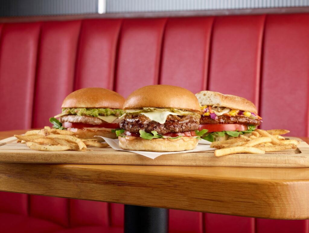 A modern, classic American diner in Rockville and Gaithersburg. Their select burger menu features different meat options for your patty, including Beef, Organic Bison, Turkey, Chicken, or Plant-Based. Try the Kickin’ Short Rib Burger with Creekstone Beef, sliced sous vide short rib, bacon, cheddar, jalopenos, onion straws, and topped with Southwest ranch and BBQ sauce.
