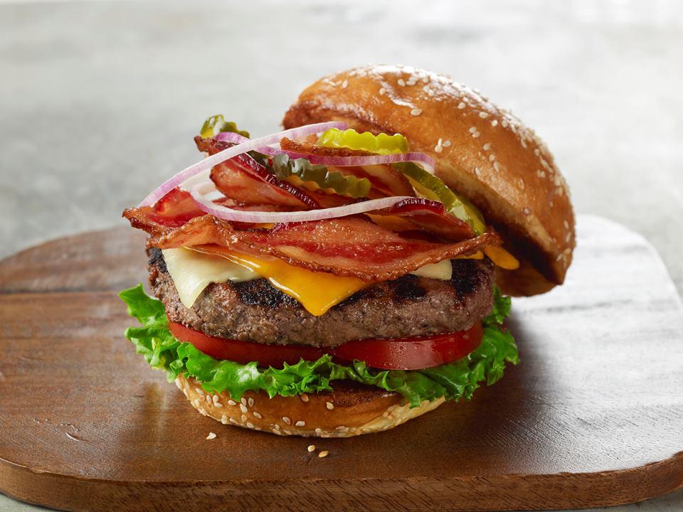 Not too far from the C&O Canal National Historical Park, Bassett’s Restaurant has a build-your-own burger option for folks who want specific toppings on their burger. All burgers are served on a potato roll with your choice of French fries or chips.