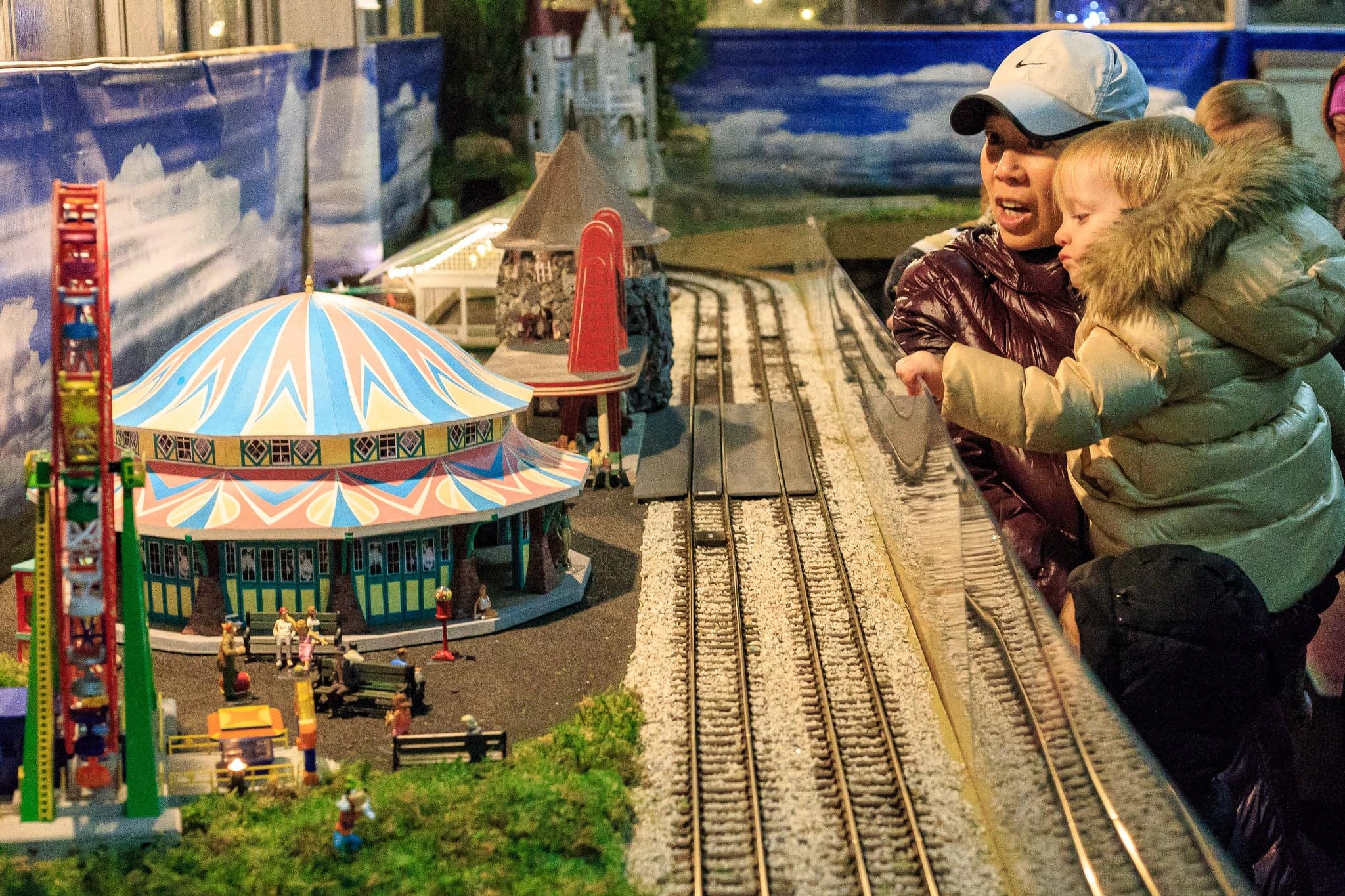 The Conservatory: A trip to Brookside Gardens wouldn’t be complete without a visit inside the Conservatory to watch G-Scale model trains wind through a seasonal landscape of living plants in the Garden Railway exhibit. The exhibit also displays intricate custom-made original models of numerous Montgomery County landmarks from the past and present, including Brookside Gardens, Kensington Railroad Station, Red Door Store, Little Tavern Restaurant, Cabin John Hotel, and the Dentzel Carousel that still operates in Glen Echo Park. The Garden Railway exhibit is free to view during the Conservatory’s hours from 10 a.m. to 3:45 p.m., November 25 through January 1 (closed December 24-25).