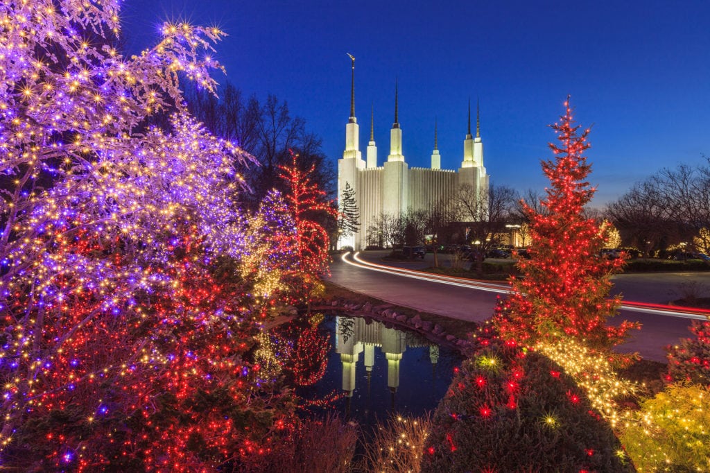 In Kensington, the Washington DC Temple hosts the Festival of Lights, lighting up the temple and the surrounding nature with lights.