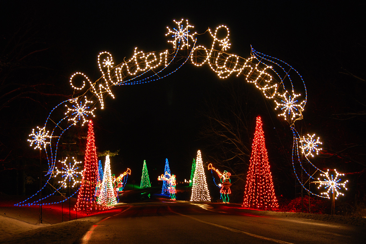 For an added experience, come during one of the Enchanted Evenings. These are special themed events available before Winter Lights opens to vehicles. S’mores Lights is for all ages to enjoy an evening roasting marshmallows in a beautiful woodland setting. Sip & Sparkle is a 21+ tasting event where guests can try beer and wine from local Tastemakers and ride around on an open-air trolley under the dazzling lights. Take your furry friends to the Walk & Wag Enchanted Evening, where you can take a one or three-mile stroll under the lights. Afterwards, get a selfie with Santa and food from a local food truck.