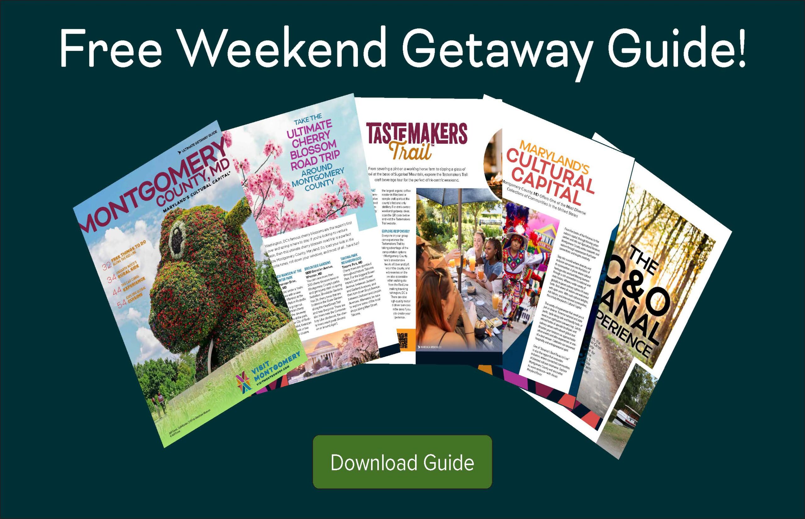 This 68-page publication features some of Montgomery County’s distinctive art, entertainment, attractions, culinary and brewery experiences, and some of the country’s most beloved historical sites. A short Metro ride from the nation’s capital, experience your weekend, your way – with classic Maryland flavor.